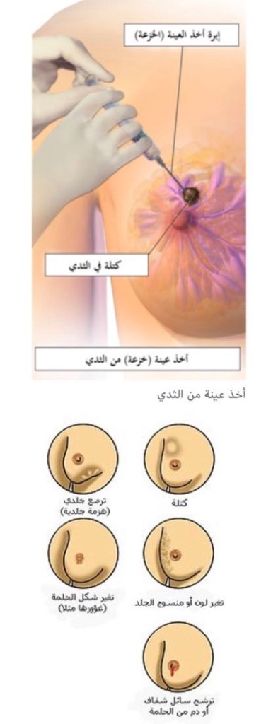باستخدام مخدر موضعي إذا لزم الأمر. إذا وُجد السائل صافٍ فإنه من المستبعد جدا أن تكون الكتلة سرطانية، أما إذا وُجد في السائل دم يتم إرسال العينة لفحصها تحت المجهرللبحث عن ما إذا كان هناك خلايا سرطانية. يُعطي استخدام الطرق الثلاثة (الفحص البدني، التصوير الإشعاعي وأخذ خزعة) نتائج عالية الدقة في تشخيص سرطان الثدي. هناك خيارات أخرى لأخذ خزعة من الثدي للتشخيص مثل :خزعة اللبأ وخزعة الثدي بمساعدة الشافط؛[79] حيث يتم فيها إزالة جزء من الكتلة الموجودة في الثدي، أو خزعة شاملة؛ حيث يتم فيها إزالة الكتلة كاملة من الثدي. في كثير من الأحيان نتائج الفحص البدني من قبل مقدم الرعاية الصحية، واستخدام جهاز الماموغرام (التصوير الشعاعي للثدي)، والاختبارات الإضافية التي يمكن القيام بها في ظروف خاصة (مثلا لتصوير بالموجات فوق الصوتية أو التصوير بالرنين المغناطيسي) هي كافية لضمان إجراءخزعة شاملة كتشخيص نهائي وعلاج أولي لسرطان الثدي